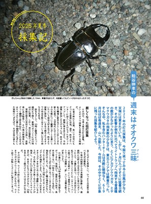 採集記は、毎年恒例となる粕谷氏の夏季オオクワ採集記と、朽木バエ氏による2025年採集ダイジェストの2本。